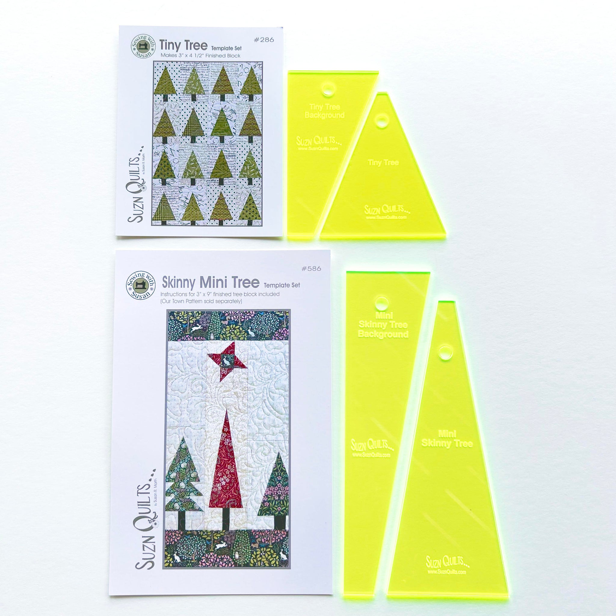 I have a beautiful new lap quilt that uses my brand new Skinny Mini Tree Template Set #586 as well as my popular Tiny Tree Template Set #286.