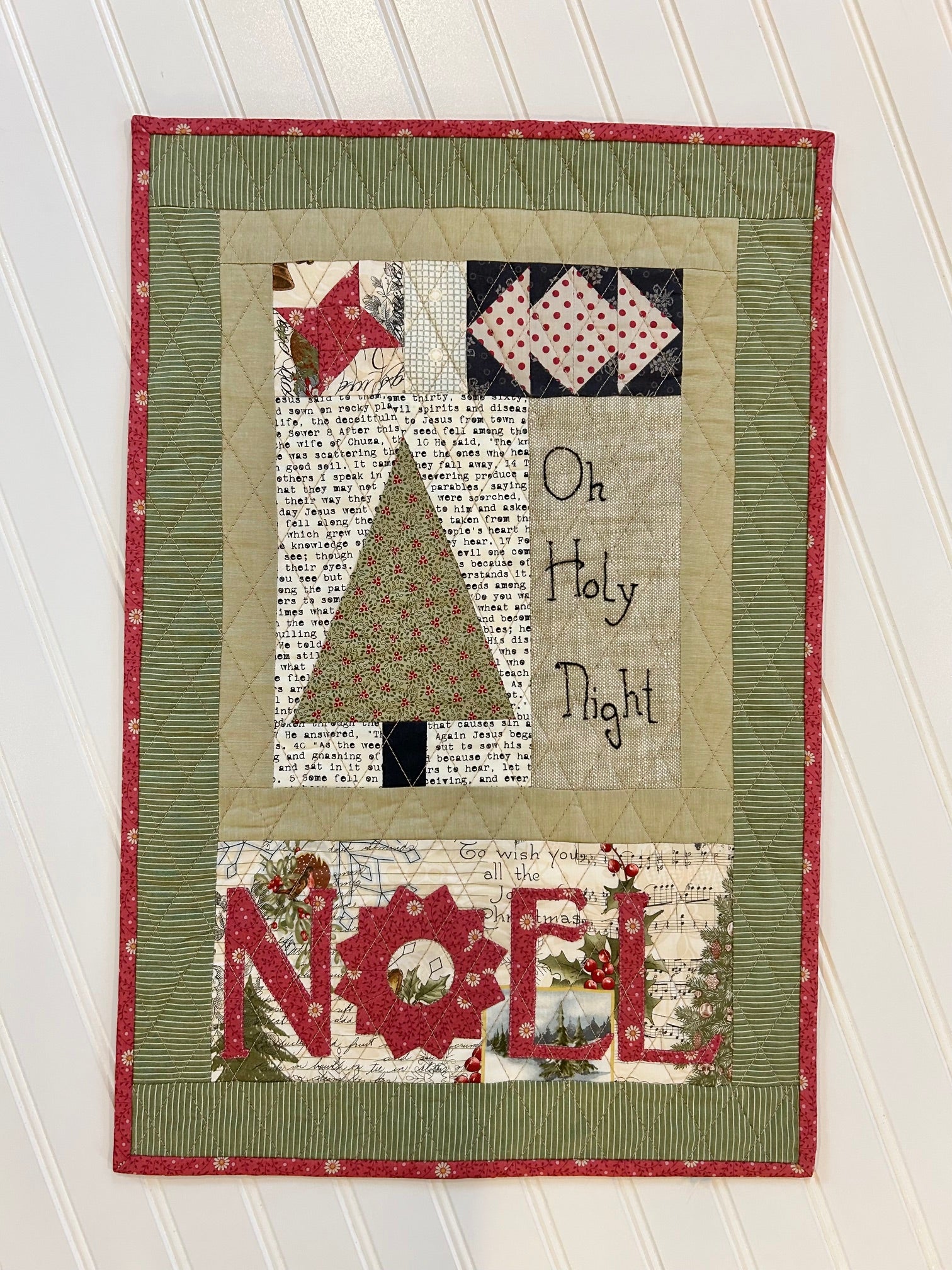 Oh Holy Night Fabric kit includes fabric for my Oh Holy Night quilt top & binding. Mini Tree & Mini Tree background as well as trunk are precut for you. Fabrics included are by Moda, Tilda, Riley Blake & Marcus.